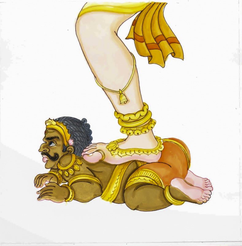 AnavaHere we have Siva’s foot on a man’s back to represent anava, which means “fragment; atom; minuteness, individuality.” Anava is the veiling power that provides individualness, or ego, to each soul, making the soul seem separate and distinct from God and the universe. The ego, sense of “I” and “mine,” ignorance; separation from God. Denotes a sense of finitude and individuality. Derived from the word anu, meaning an atom or something exceedingly small. One of the three malas or bondages: anava, karma and maya. Anava is the cause of the soul’s mistaken sense of separation from God Siva, and the last bond broken at union or Self-Realization.