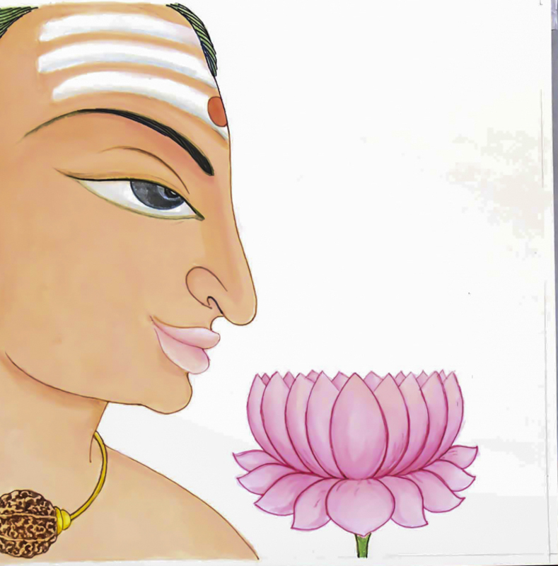 ConcentrationDharana is concentration. From dhri, “to hold.” Here a man concentrates his mind on a lotus flower, focusing solely on the flower and seeking to not allow distraction.