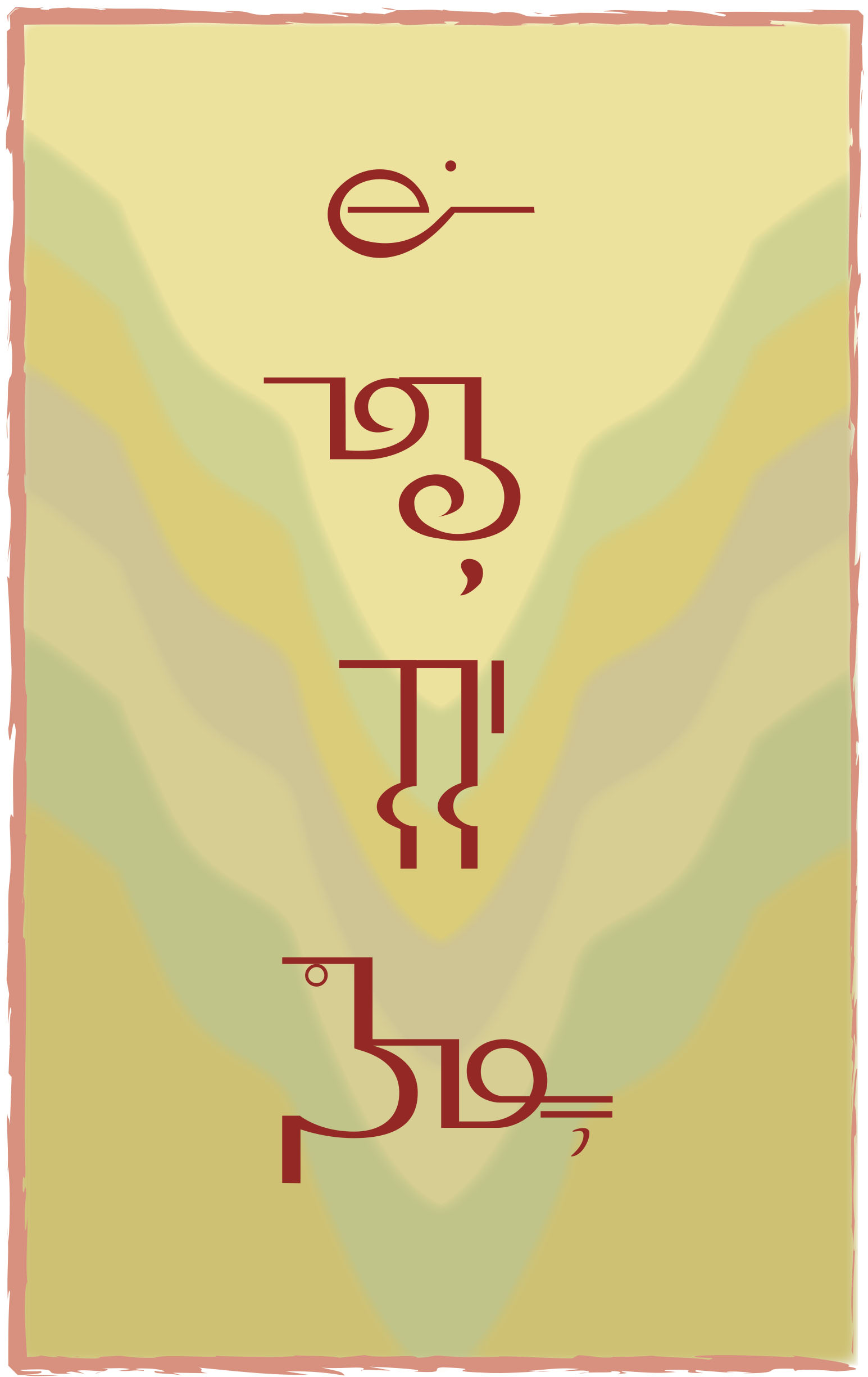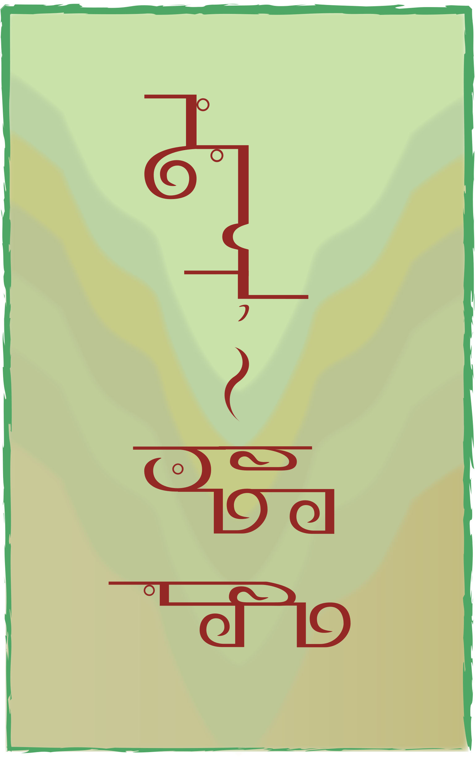 IntrospectionIntrospection. This is Shum script for tyemmuif, niimf, balikana, milinaka. It is a meditation in Gurudeva’s language of meditation and one of the 12 meditations he asked us to carve on the pillars. This is the January meditation. Tyemmuif is the contemplative practice of looking within with the eyes partially open. Nimf is the curved swash which designates awareness flowing through the mind, moving from one area to another. Balikana is seeing the moon-glow light within the mind. Milinaka is the light that comes when balikana is sustained for a long time, a brighter and more persistent light in the mind.