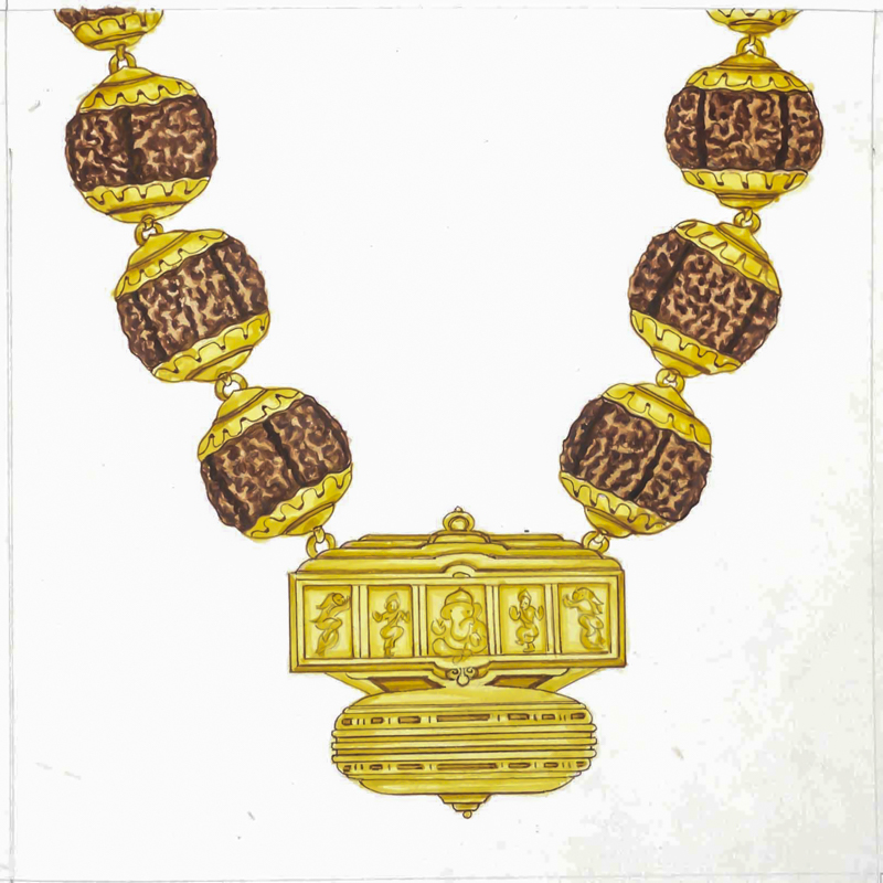 Pontiff's PendantSirobhashana is a rudraksha mala with a golden pendant containing holy relics, worn by the abbot of an aadheenam, around his neck.