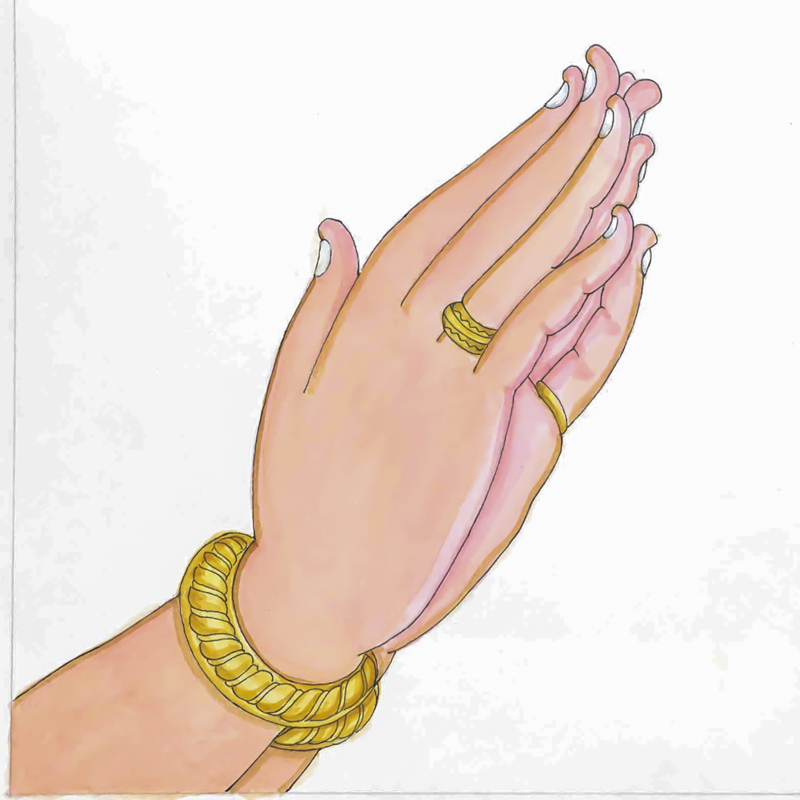 Prayerful GestureThe anjali mudra is a gesture denoting reverence and respect. Also called pranamanjali. A gesture of greeting, in which the two palms are held gently together and slightly cupped.