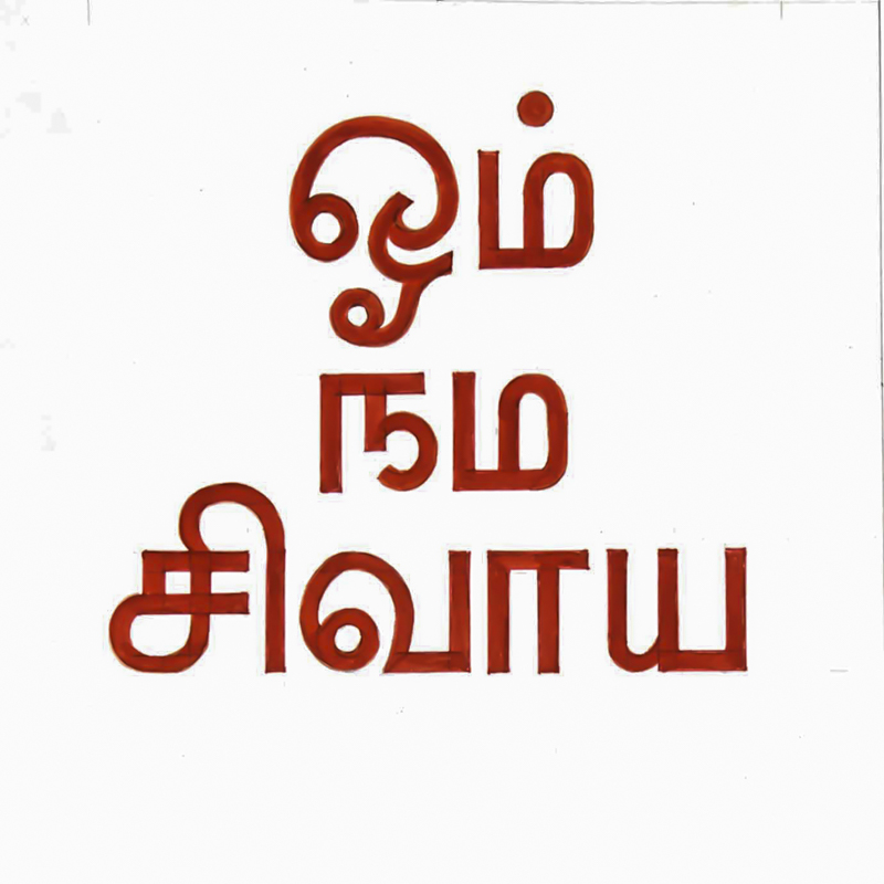 NamahSivaya in TamilAum, Namasivaya. This is the holy five-lettered mantra written in Tamil script.