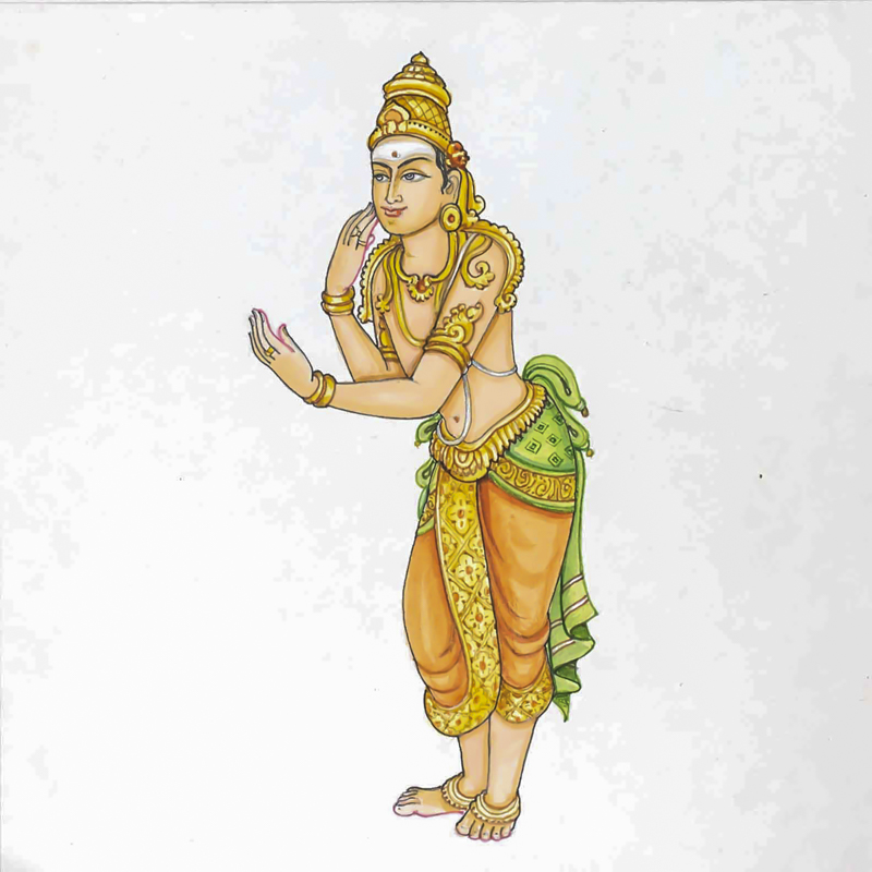 DvajapalakThis is one of the dvaja palikas who guard the entrance to a temple sanctum. His hand is indicating God Siva is waiting within the innermost sanctum, and is inviting pilgrims to draw closer to God.